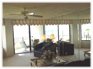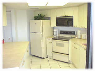 The large living area has a leather couch that opens to a queen size sleeper sofa (not extremely comfortable for a long period of time). There is also an overstuffed leather chair. There is a 21" color TV with VCR and remotes. The living area opens out onto the balcony with a spectacular view of the beach and the Atlantic. Great sunrises!!