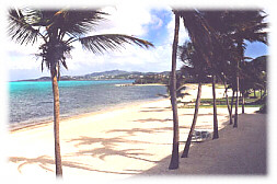 Property #689 Luxurious Condo - 2 BR, 2 Baths, Sleeps 4 Christiansted, St. Croix, U.S. Virgin Islands General Description | Location Type | Sleeping Facilities | Baths | Other Living Space | Kitchen/Dining | Amenities | Parking Facilities | Pet Information | Activities/Entertainment | Rental Rates | Dates of Availability | Contact Owner | Important Notice Directly on the beach on St. Croix, USVI! Luxurious and spacious "Caribbean blue" is our 2 bedroom 2 bath Condominium with full kitchen, A/C, W/D and a view that most only dream of! Comfortably sleeps and lives up to four. Refurnished and redecorated Feb 2000, "Caribbean Blue", located on Sugar Beach one of St. Croix's best sugar-white beaches is the most effective place to maximize your vacation dollars. All resort facilities included, freshwater pool, 2 lighted tennis courts, pristine beach and manicured grounds will make your stay a "True Vacation Paradise". Spacious living areas tastefully finished in the tranquil colors of subtle blues providing a soothing calm that changes appearance with the passing time of day, capturing and enhancing the turquoise view of the Caribbean Sea as the focal point from throughout. Mirrored ceiling accents rival the finest hotels. Tasteful and comfortable furnishings including decorations are in the Caribbean flair yet with an at home feeling in a resort atmosphere. Features: Full Service Kitchen, Washer, Dryer, Central air-conditioning, Ceiling-Fans, Phone, Cable Television, Stereo, and over 1400 SF of space. Sugar white beaches, Turquoise waters and endless blue skies all meet for your private view from the expansive 30' Gallery! Fast food, groceries and spirits are minutes from the complex grounds for the non-adventurers. 20 minutes from the airport and located just 5 minutes outside of Christianstead, "Caribbean Blue" on Sugar Beach offers superb convenience to duty free shopping, water sports and dining that is among the best in the Caribbean. From your daytime adventures to the nightly entertainment or a visit to the newest and finest Caribbean Casino "Divi Carina Bay" your stay will be unforgettable. St. Croix is the largest of the Virgin Islands, 82 square miles, and the eastern part of the Island is the eastern most point of the United States. St. Croix offers fantastic beaches to the extremes of environmental terrain for visitors to explore. Your days can be filled with a variety of adventurous and leisurely activities. If your not enjoying the beach, free formed fresh water Pool or 2 Lighted Tennis courts then Fine Restaurants and Duty-Free-Shops are minutes away. Diving, Snorkeling, Sailing, WindSurfing, Deep-Sea-Fishing and Diving, Horseback-Riding, Rain forests, Botanical Gardens, Reefs, Ruins and Buck Island are some of your adventures to experience. Wash up on our sandy shores, find all the treasures that St. Croix has to offer.